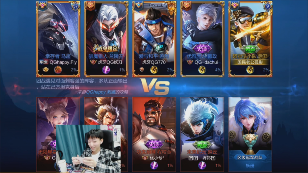 这一局孤影选了后羿,看过QG战队竞赛的小伙伴应该都知道,QG刺痛的后羿在部队中是四保一的大腿级选手,所以孤影表明也想享用一下工作级的四保一。三位QG队友十分爽快地容许了孤影的要求,孤影放出豪言要一人吃三路经济,野区也不放过,实在是狂得不可。