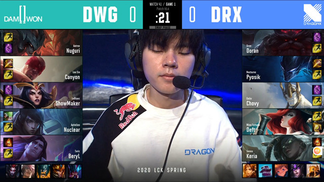 13分钟,DWG下路组合越塔将赛马击杀,Deft还在路上还到位,随后DWG中野侵略野区遭反打,Canyon盲僧被击杀。17分钟,DRX在小龙处打出一波1换2,拆掉下路一塔后将小龙也拿下。21分钟,Deft和Doran下路匿伏成功击杀牛宝,这把牛宝被针对得很惨啊。