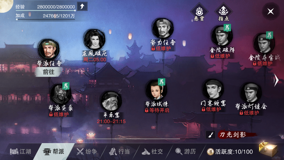 在一梦江湖中,帮派的成员,假如常常不做帮派使命什么的,那么很快帮派就会堕入低保护的状况。这个状况下,许多的帮派功用,都是无法敞开的,比方金陵夺宝战、帮派试炼等等,都没有很好的办法参加了。