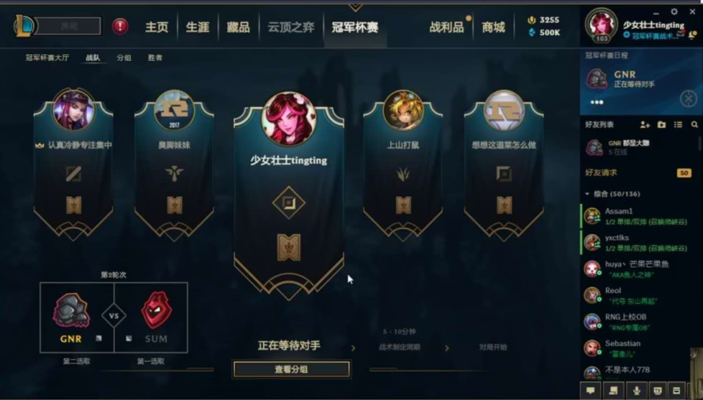 两边阵型很快选定安排妥当,GNR战队这边,Letme挑选了自己十分拿手的奥恩上单,MLXG挑选了巨魔打野,姿势挑选了兰博中单,Uzi和万坤的下路则是挑选了EZ加泰坦的组合。在SUM战队这边则是挑选了一个上单瑟提,打野皇子,中单冰女,AD女枪,辅佐布隆的组合。