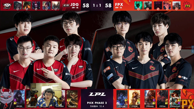 在本场BP上,JDG选出了上单鳄鱼,打野千珏,中单卡尔玛,下路厄斐琉斯和洛的组合;FPX拿出了上单剑魔,打野酒桶,中单塞拉斯,下路女枪和女日组合。