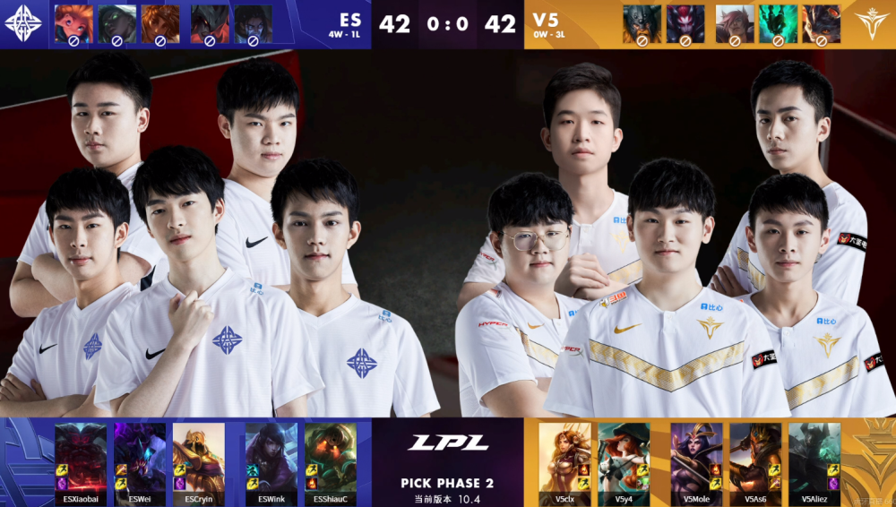 在今日的LPL春季赛ES对战V5,首局竞赛ES抢到了版别两大强势英豪奥恩以及厄斐琉斯,中路给cryin补出沙皇保证后期,而V5则是交换了女枪,给下东北拿到妖姬。