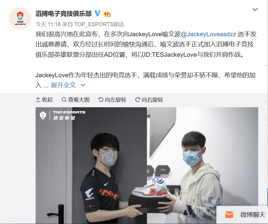 在JKL参加TES的音讯官宣之后,iG战队官方微博也是发文祝愿JKL,在这篇挨近500字的小作文中,咱们正真看到了iG战队关于JKL的培育,也看出了IG战队关于JKL的感谢,一起也看到了他们的不舍,当然更多的仍是祝愿,期望他未来的工作路越来越顺。